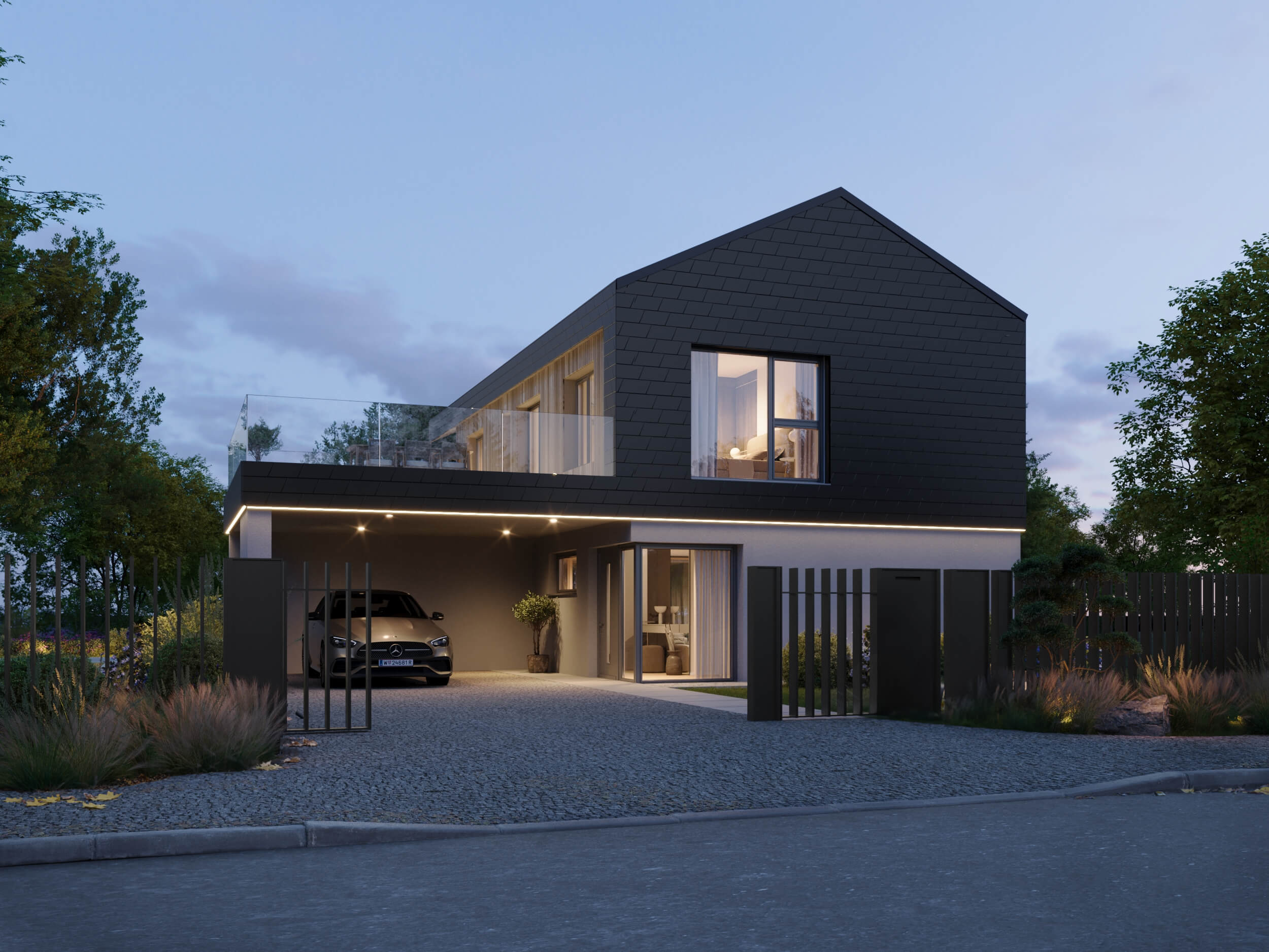Im Obergeschoss findest du zwei großzügige Kinderzimmer, ein separates WC und ein kompaktes Duschbad. Das Elternreich vereint Schlafzimmer, Wellnessbereich und Ankleidezimmer in einem harmonischen Raum. Die begehbare, barrierefreie Dusche, die Eckbadewanne und die Aussicht auf die überdachte Dachterrasse machen diesen Bereich zu einem wahren Traum.